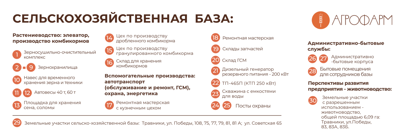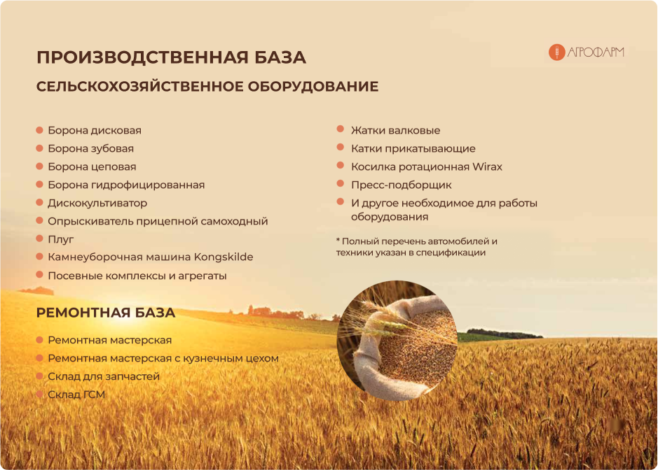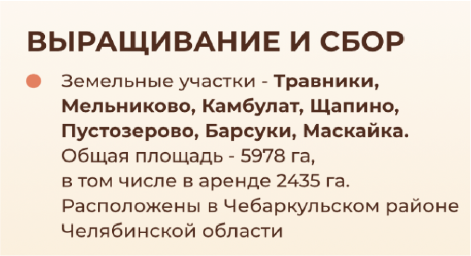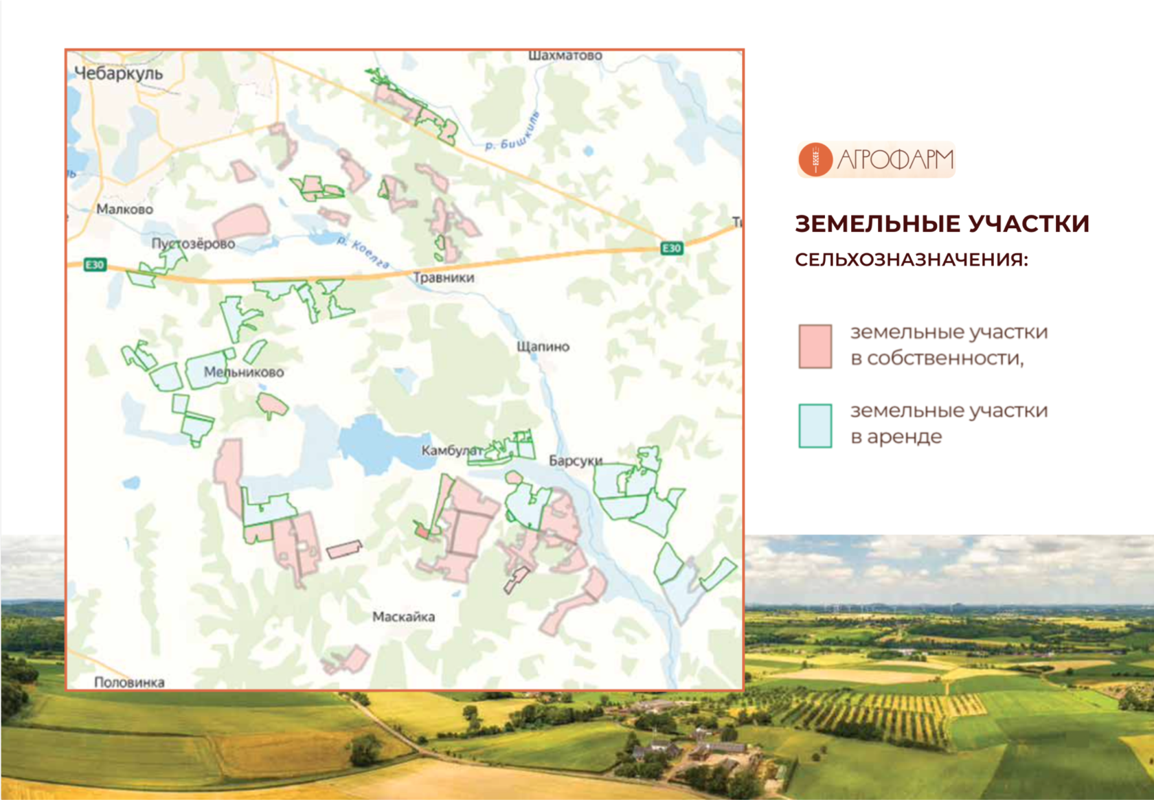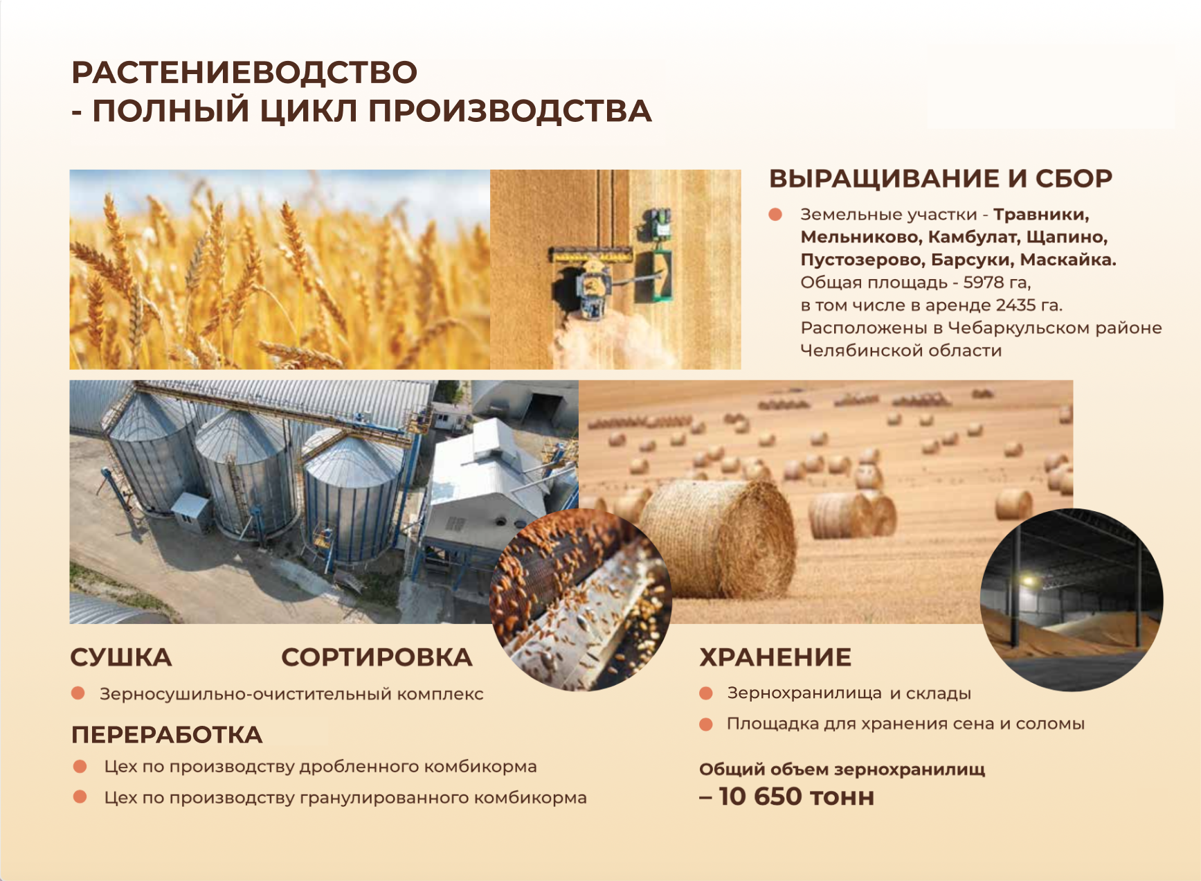 Сельскохозяйственная база агропредприятия расположена в Чебаркульском районе Челябинской области
